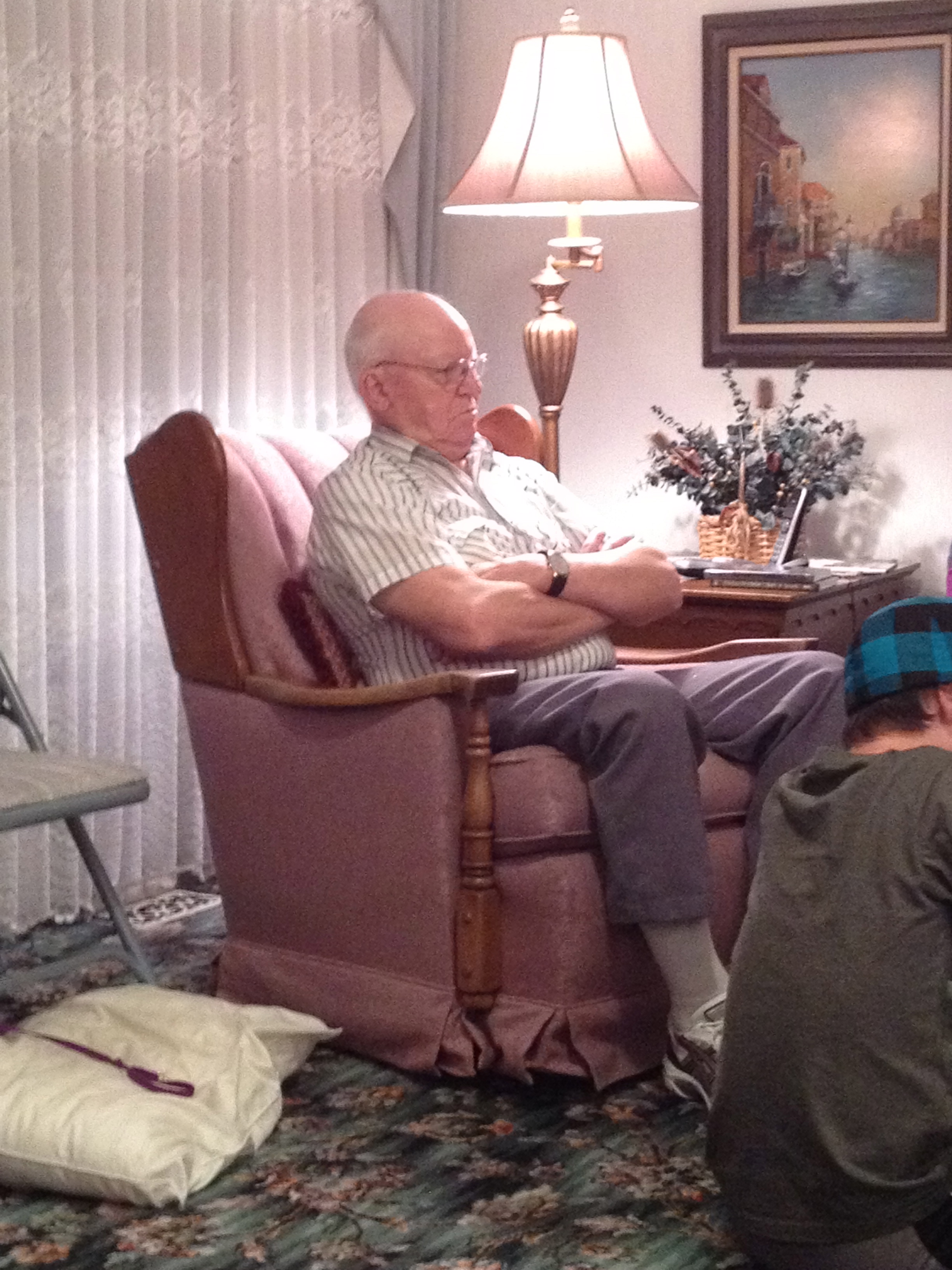 Lynn Gray, Grandma’s husband taking a nap in the chair at the party.  Getting old has got to be the best!