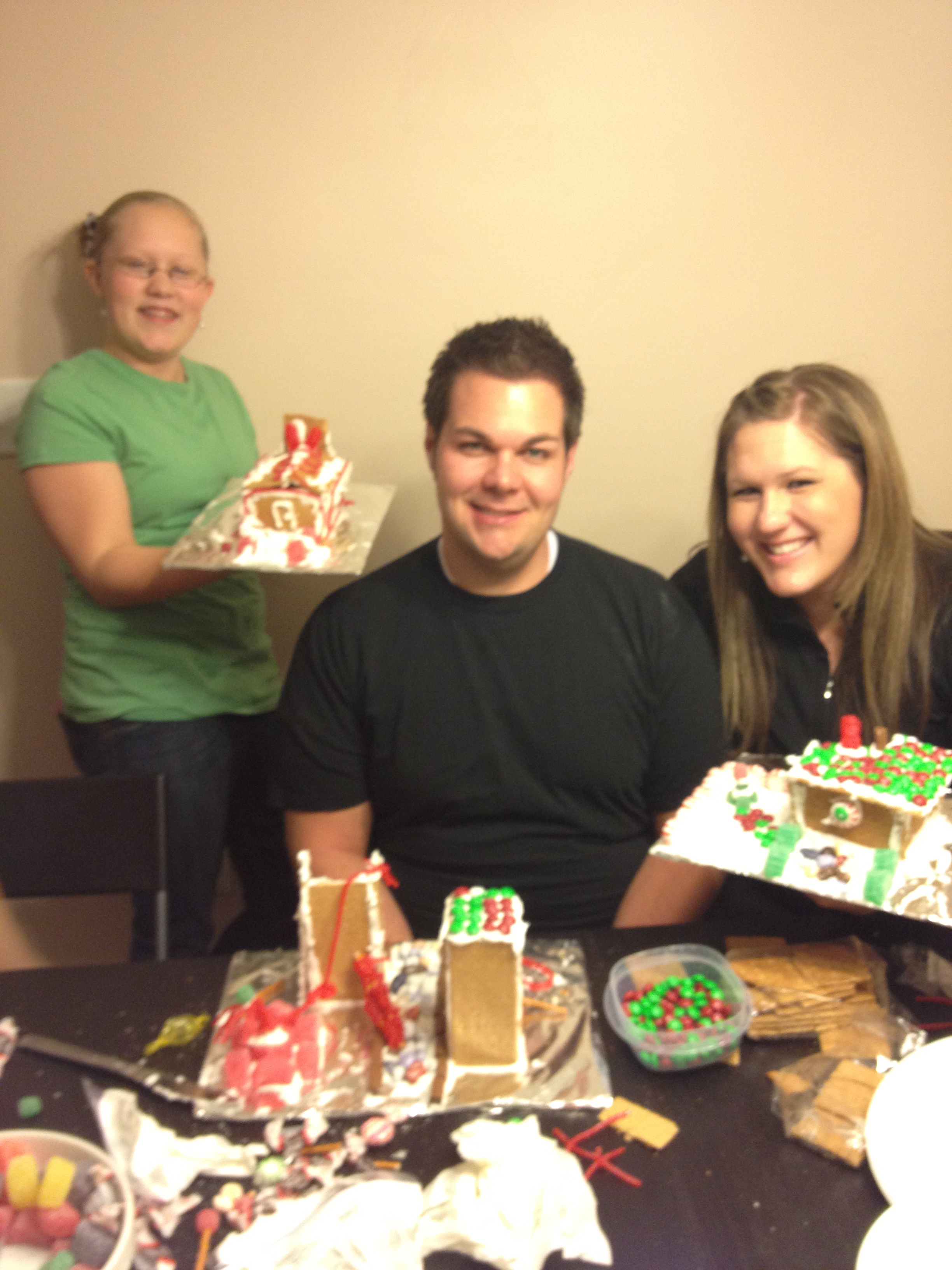 Jason and I have been making gingerbread houses together every year since the beginning of our relationship (almost 4 years now) and it has turned into quite a little tradition for us.  Typically we make houses with Jason’s family, however this year we ended up doing it with my siblings and their families.  I always love having my family over because of the sheer entertainment and chaos that it provides!  I often times find myself stepping back from whatever activity that is going on, just so I can listen to the sheer volume of noise that is roaring through our house.  It gets SO LOUD that I find myself sitting and laughing over the amount of noise in the house.  I find it hilarious!