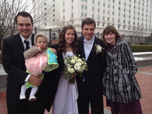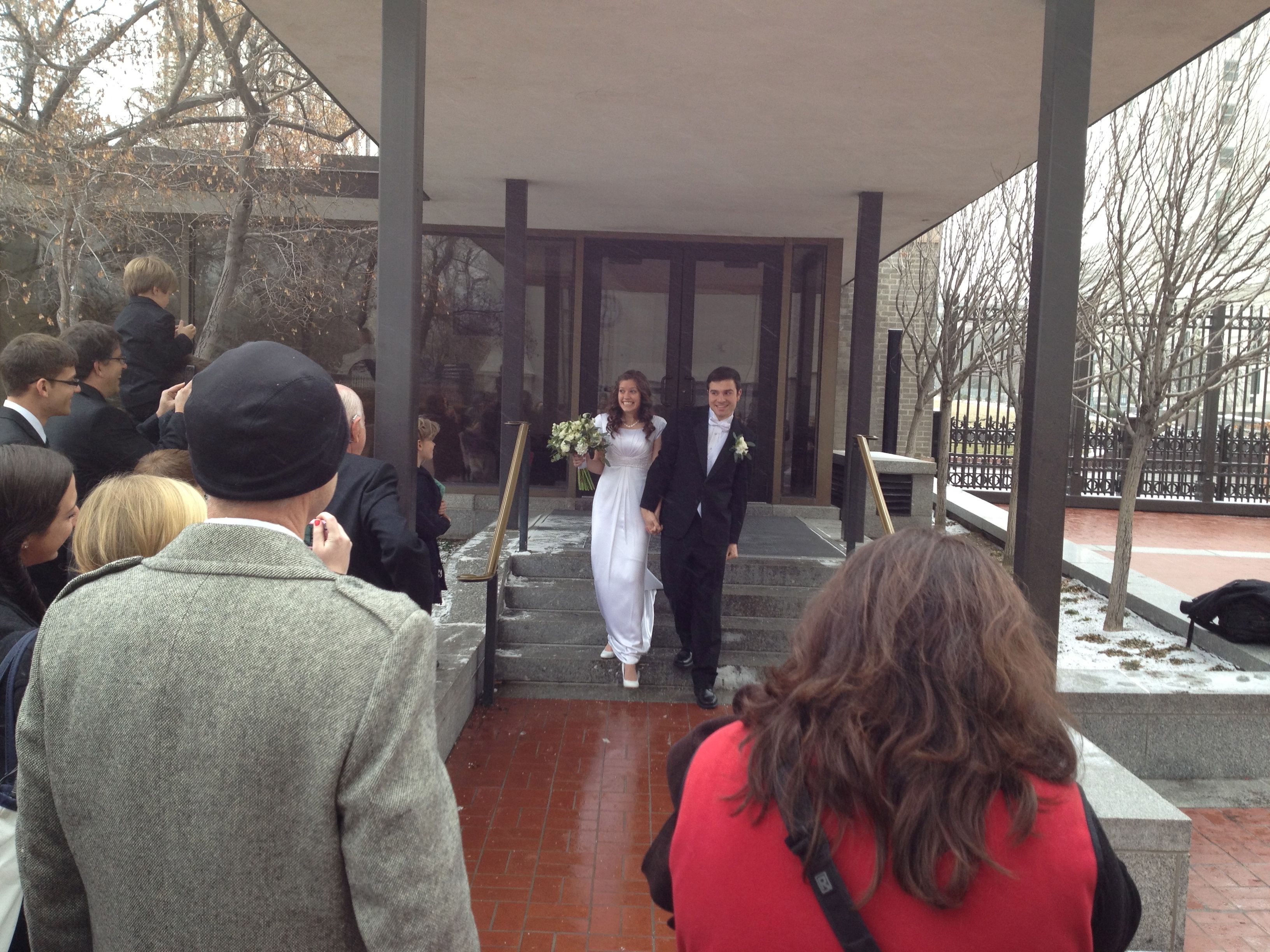 The Happy Couple coming out of the Salt Lake Temple.