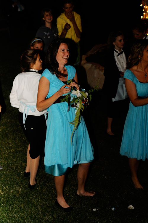 Tossing the bouquet! There may have been a secret plan in place for the toss… (wink, wink)