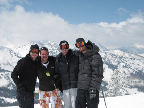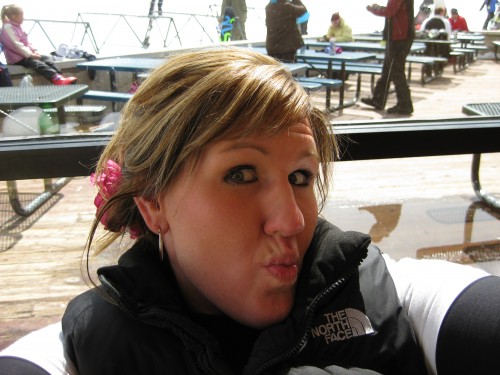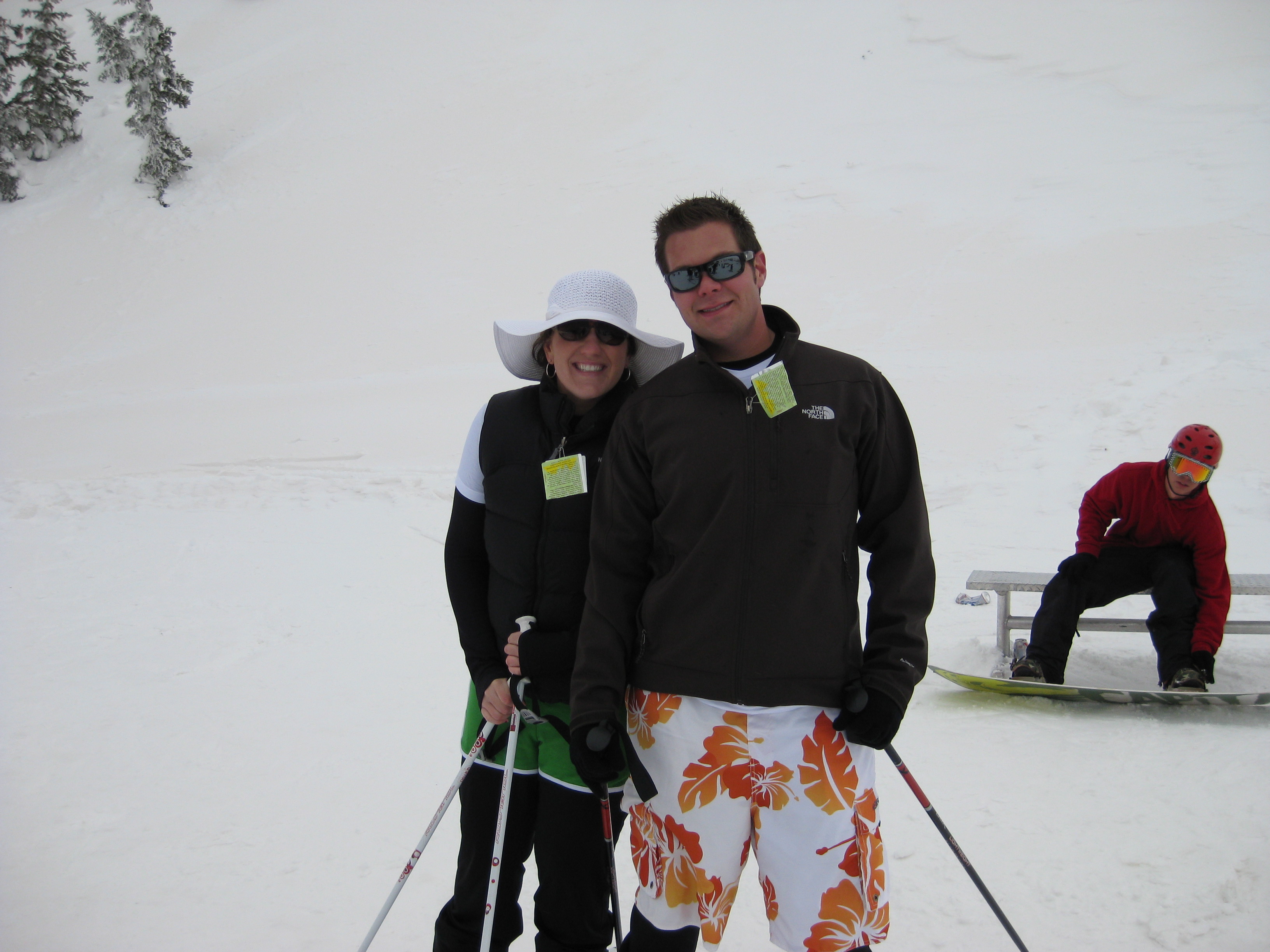 Every year on the VERY last day of the ski season, Brighton Ski Resort offers what they call “Bikini Day”. This is a day were you can ski all day for just $29.00 BUT only if you wear a “bikini oR beach attire”! Of course Jas and I decided to “dive right into this action” and get all dressed up. I obviously decided to wear the beach attire because although it was a SPRING DAY it was definelty NOT spring weather. Burrr!