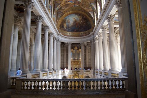 Full size cathedral inside the palace. This was crazy because all the people would be on the very bottom level, the King would be on the middle level, and there is a painting of God on the ceiling. The idea was that the people would look up to the king, and the king would look to God. Interesting set-up.
