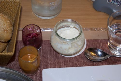 This is a PERFECT example of when we ordered something and got something completely different then what we thought! We ordered a fancy cheese platter (or so we thought) and these gross things are what came! Warm clumpy cheese, a caramel type of sauce, and a raspberry jam thing. So SICK!